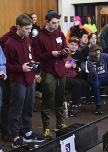 在网上足彩买球的高级机器人和FTC机器人竞赛选修课上,学生们花了一个学期的时间来设计和制造复杂的机器人,以参加一年一度的FIRST技术挑战赛(FTC)机器人竞赛。 他们以8到14人一组的团队工作,由经验丰富的学生担任队长,培养从机械工程到社区拓展、项目管理和软件开发等领域的专业技能。